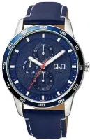 Мужские наручные часы Q&Q Attractive AA38J312Y. Точный кварцевый механизм с аналоговой индикацией. Корпус изготовлен из высококачественной часовой латуни с высокими антикоррозийными свойствами. На стрелки и отметки нанесен светонакопительный состав, благодаря этому считывать информацию с циферблата возможно и в темноте. На циферблате отображается текущее число месяца и день недели. Ремешок изготовлен из кожи. Прочное, устойчивое к царапинам минеральное стекло защищает часы от повреждений.Часы являются водонепроницаемыми до 5 Бар. Цвет корпуса: Двухцветный. Цвет циферблата: Синий. Ширина (с заводной головкой): 44мм. Толщина: 11мм. Гарантия: 1 год.