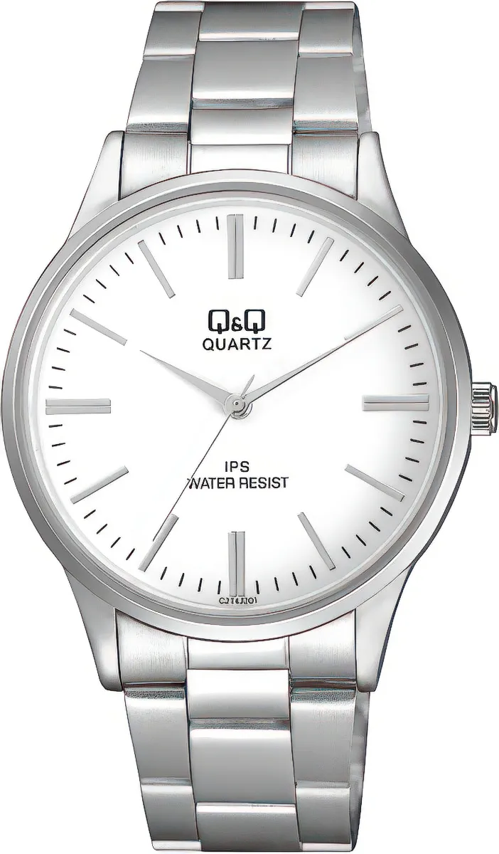 Классические мужские часы с рисками на циферблате, оснащенные прочным стальным браслетом.