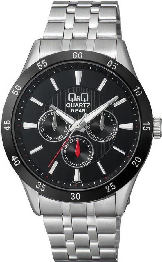 Мужские наручные часы Q&Q Attractive CE02J402Y. Точный кварцевый механизм с аналоговой индикацией. Корпус изготовлен из высококачественной часовой латуни с высокими антикоррозийными свойствами. На стрелки и отметки нанесен светонакопительный состав, благодаря этому считывать информацию с циферблата возможно и в темноте. На циферблате отображается текущее число месяца и день недели. Браслет из нержавеющей стали. Прочное, устойчивое к царапинам минеральное стекло защищает часы от повреждений.Часы являются водонепроницаемыми до 5 Бар. Цвет корпуса: Черный. Цвет циферблата: Черный. Ширина (с заводной головкой): 42мм. Толщина: 10мм. Гарантия: 1 год.