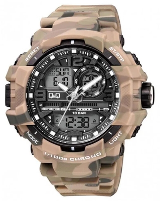 Электронные часы с точность хода не хуже -10 +15 сек./в месяц. • Ежедневный будильник со звуковым сигналом. • Секундомер. • Таймер обратного отсчета. • Автоматический календарь. • Отображение текущего времени в основных городах и регионах мира. • Электрическая подсветка - для освещения циферблата используется светодиод. • Минеральное стекло устойчивое к возникновению царапин. • Надёжный корпус из прочного и лёгкого пластика. • Коричневый каучуковый ремешок. • Водозащита до 10 АТМ. • Диаметр корпуса 55 мм, толщина 15 мм. Вес 67 гр.