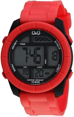 Мужские наручные часы Q&Q Attractive M123J009Y. Точный кварцевый механизм с цифровой индикацией. Корпус изготовлен из высококачественной нержавеющей стали 316L с высокими антикоррозийными свойствами. Светодиодная подсветка. На циферблате отображается текущее число, месяц и день недели. Функция хронографа. Полимерный ремешок. Натуральный полимерный материал является идеальным для изготовления ремешка благодаря своей чрезвычайной прочности и гибкости. Прочное, устойчивое к царапинам минеральное стекло защищает часы от повреждений. Часы являются водонепроницаемыми до 10 Бар. Цвет корпуса: Красный. Цвет циферблата: Черный. Ширина (с заводной головкой): 48мм. Толщина: 14мм. Гарантия: 1 год.
