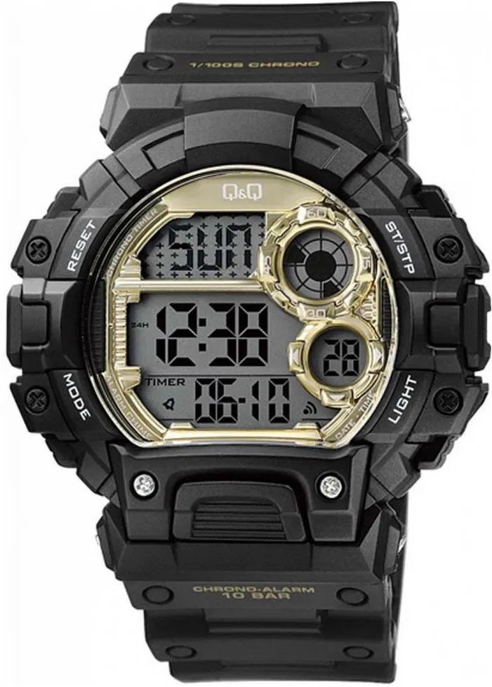 Мужские наручные часы Q&Q Attractive M144J004Y. Точный кварцевый механизм с цифровой индикацией. Полимерный корпус надежно защищает часы от механических повреждений. Светодиодная подсветка. На циферблате отображается текущее число месяца и день недели. Функция хронографа. Полимерный ремешок. Натуральный полимерный материал является идеальным для изготовления ремешка благодаря своей чрезвычайной прочности и гибкости. Прочное, устойчивое к царапинам минеральное стекло защищает часы от повреждений.Часы являются водонепроницаемыми до 10 Бар. Цвет корпуса: Черный. Цвет циферблата: Серый. Ширина (с заводной головкой): 47мм. Толщина: 17мм. Гарантия: 1 год.