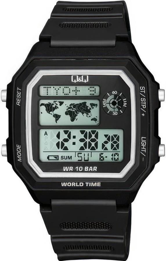 Мужские наручные часы Q&Q Attractive M196J001Y. Точный кварцевый механизм с цифровой индикацией. Полимерный корпус надежно защищает часы от механических повреждений. Светодиодная подсветка. На циферблате отображается текущее число месяца и день недели. Функция хронографа. Полимерный ремешок. Натуральный полимерный материал является идеальным для изготовления ремешка благодаря своей чрезвычайной прочности и гибкости. Органическое стекло. Часы являются водонепроницаемыми до 10 Бар. Цвет корпуса: Черный. Ширина (с заводной головкой): 42мм. Толщина: 13мм. Гарантия: 1 год.