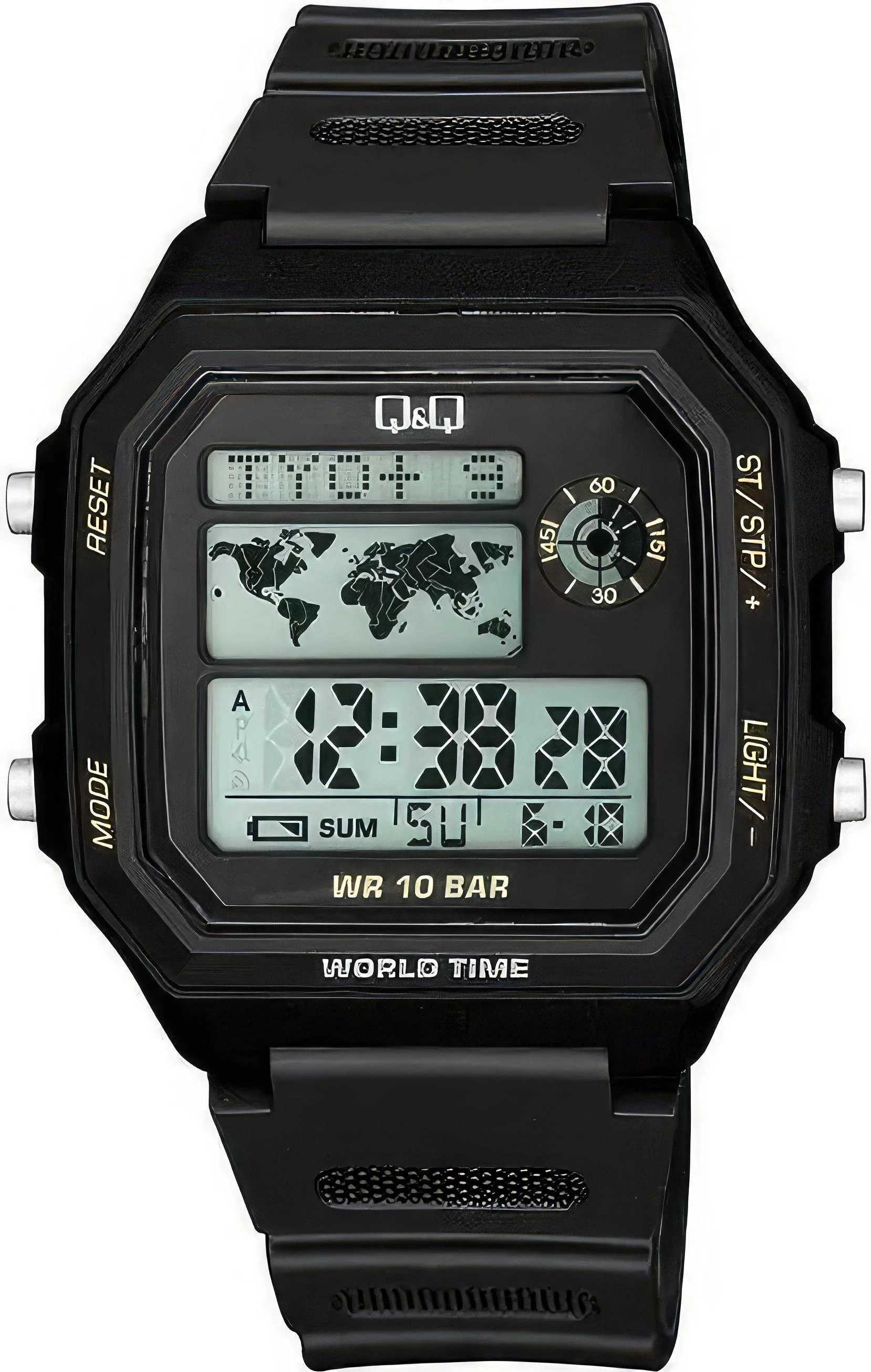 Мужские наручные часы Q&Q Attractive M196J002Y. Точный кварцевый механизм с цифровой индикацией. Полимерный корпус надежно защищает часы от механических повреждений. Светодиодная подсветка. На циферблате отображается текущее число, месяц и день недели. Функция хронографа. Полимерный ремешок. Натуральный полимерный материал является идеальным для изготовления ремешка благодаря своей чрезвычайной прочности и гибкости. Органическое стекло. Часы являются водонепроницаемыми до 10 Бар. Ширина (с заводной головкой): 42мм. Толщина: 13мм. Гарантия: 1 год.