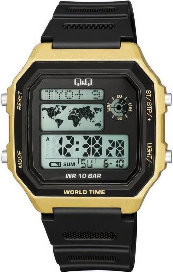 Мужские наручные часы Q&Q Attractive M196J004Y. Точный кварцевый механизм с цифровой индикацией. Полимерный корпус надежно защищает часы от механических повреждений. Светодиодная подсветка. На циферблате отображается текущее число, месяц и день недели. Функция хронографа. Полимерный ремешок. Натуральный полимерный материал является идеальным для изготовления ремешка благодаря своей чрезвычайной прочности и гибкости. Органическое стекло. Часы являются водонепроницаемыми до 10 Бар. Ширина (с заводной головкой): 42мм. Толщина: 13мм. Гарантия: 1 год.