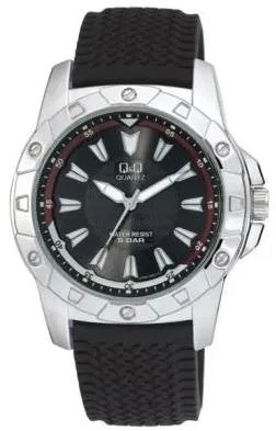 <b>Мужские наручные часы Q&Q Attractive Q798J302Y.</b> Точный кварцевый механизм с аналоговой индикацией. Корпус изготовлен из высококачественной часовой латуни с высокими антикоррозийными свойствами. На стрелки и отметки нанесен светонакопительный состав, благодаря этому считывать информацию с циферблата возможно и в темноте. Ремешок изготовлен из каучука. Прочное, устойчивое к царапинам минеральное стекло защищает часы от повреждений.Часы являются водонепроницаемыми до 5 Бар. Цвет корпуса: Серебристый. Цвет циферблата: Черный. Ширина (с заводной головкой): 47мм. Толщина: 11мм. Гарантия: 1 год.