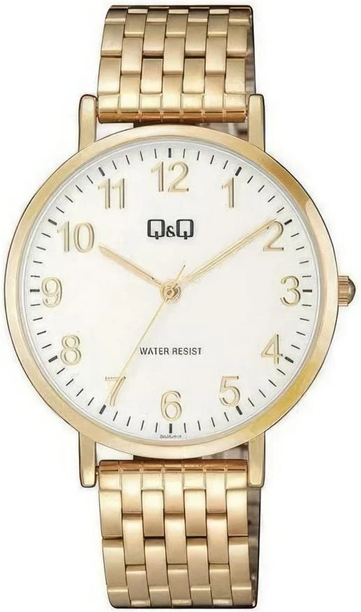 Мужские наручные часы Q&Q Attractive QA20J014Y. Точный кварцевый механизм с аналоговой индикацией. Корпус изготовлен из высококачественной часовой латуни с высокими антикоррозийными свойствами. Браслет из нержавеющей стали. Прочное, устойчивое к царапинам минеральное стекло защищает часы от повреждений.Часы являются водонепроницаемыми до 3 Бар. Цвет корпуса: Желтое золото. Цвет циферблата: Белый. Ширина (с заводной головкой): 42мм. Толщина: 10мм. Гарантия: 1 год.