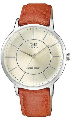 Мужские наручные часы Q&Q Attractive QA24J332Y. Точный кварцевый механизм с аналоговой индикацией. Корпус изготовлен из высококачественной часовой латуни с высокими антикоррозийными свойствами. Ремешок изготовлен из кожи. Прочное, устойчивое к царапинам минеральное стекло защищает часы от повреждений.Часы являются водонепроницаемыми до 3 Бар. Цвет корпуса: Серебристый. Цвет циферблата: Белый. Ширина (с заводной головкой): 42мм. Толщина: 9мм. Гарантия: 1 год.