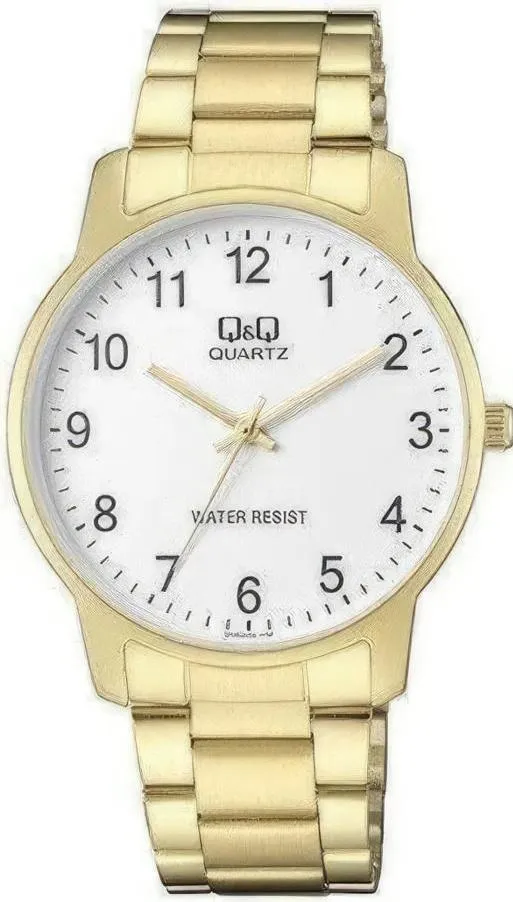 Мужские наручные часы Q&Q Attractive QA42J004Y. Точный кварцевый механизм с аналоговой индикацией. Корпус изготовлен из высококачественной часовой латуни с высокими антикоррозийными свойствами. Браслет из нержавеющей стали. Прочное, устойчивое к царапинам минеральное стекло защищает часы от повреждений.Часы являются водонепроницаемыми до 3 Бар. Цвет корпуса: Желтое золото. Цвет циферблата: Белый. Ширина (с заводной головкой): 40мм. Толщина: 10мм. Гарантия: 1 год.