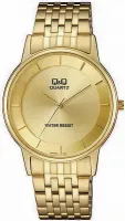 Мужские наручные часы Q&Q Attractive QA56J010Y. Точный кварцевый механизм с аналоговой индикацией. Корпус изготовлен из высококачественной часовой латуни с высокими антикоррозийными свойствами. Браслет из нержавеющей стали. Прочное, устойчивое к царапинам минеральное стекло защищает часы от повреждений.Часы являются водонепроницаемыми до 3 Бар. Цвет корпуса: Желтое золото. Цвет циферблата: Золотистый. Ширина (с заводной головкой): 40мм. Толщина: 8мм. Гарантия: 1 год.