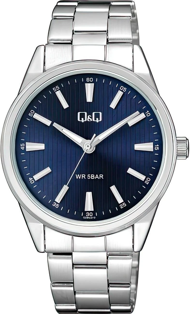 Мужские наручные часы Q&Q Attractive QZ94J212Y. Точный кварцевый механизм с аналоговой индикацией. Корпус изготовлен из высококачественной часовой латуни с высокими антикоррозийными свойствами. На стрелки и отметки нанесен светонакопительный состав, благодаря этому считывать информацию с циферблата возможно и в темноте. Браслет из нержавеющей стали. Прочное, устойчивое к царапинам минеральное стекло защищает часы от повреждений.Часы являются водонепроницаемыми до 5 Бар. Цвет корпуса: Серебристый. Цвет циферблата: Синий. Ширина (с заводной головкой): 40мм. Толщина: 9мм. Гарантия: 1 год.