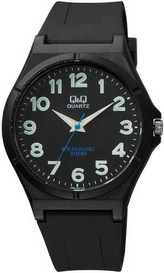 Мужские наручные часы Q&Q Attractive VQ66J025Y. Точный кварцевый механизм с аналоговой индикацией. Полимерный корпус надежно защищает часы от механических повреждений. На стрелки и отметки нанесен светонакопительный состав, благодаря этому считывать информацию с циферблата возможно и в темноте. Полимерный ремешок. Натуральный полимерный материал является идеальным для изготовления ремешка благодаря своей чрезвычайной прочности и гибкости. Органическое стекло. Часы являются водонепроницаемыми до 10 Бар. Цвет корпуса: Черный. Ширина (с заводной головкой): 42мм. Толщина: 10мм. Гарантия: 1 год.
