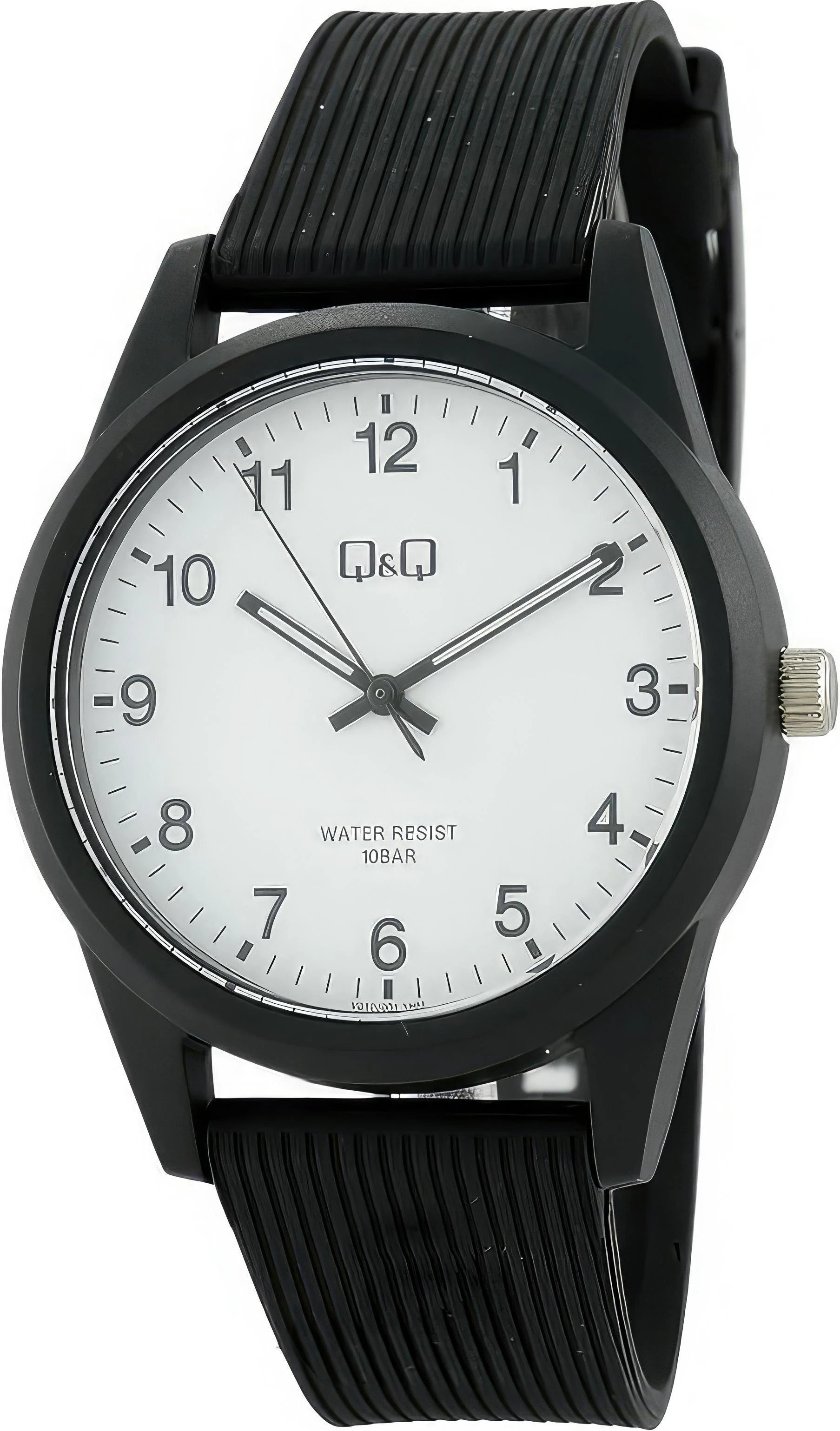 Мужские наручные часы Q&Q Attractive VS12J001Y. Точный кварцевый механизм с аналоговой индикацией. Полимерный корпус надежно защищает часы от механических повреждений. На стрелки и отметки нанесен светонакопительный состав, благодаря этому считывать информацию с циферблата возможно и в темноте. Полимерный ремешок. Натуральный полимерный материал является идеальным для изготовления ремешка благодаря своей чрезвычайной прочности и гибкости. Органическое стекло. Часы являются водонепроницаемыми до 10 Бар. Цвет корпуса: Черный. Цвет циферблата: Белый. Ширина (с заводной головкой): 40мм. Толщина: 10мм. Гарантия: 1 год.