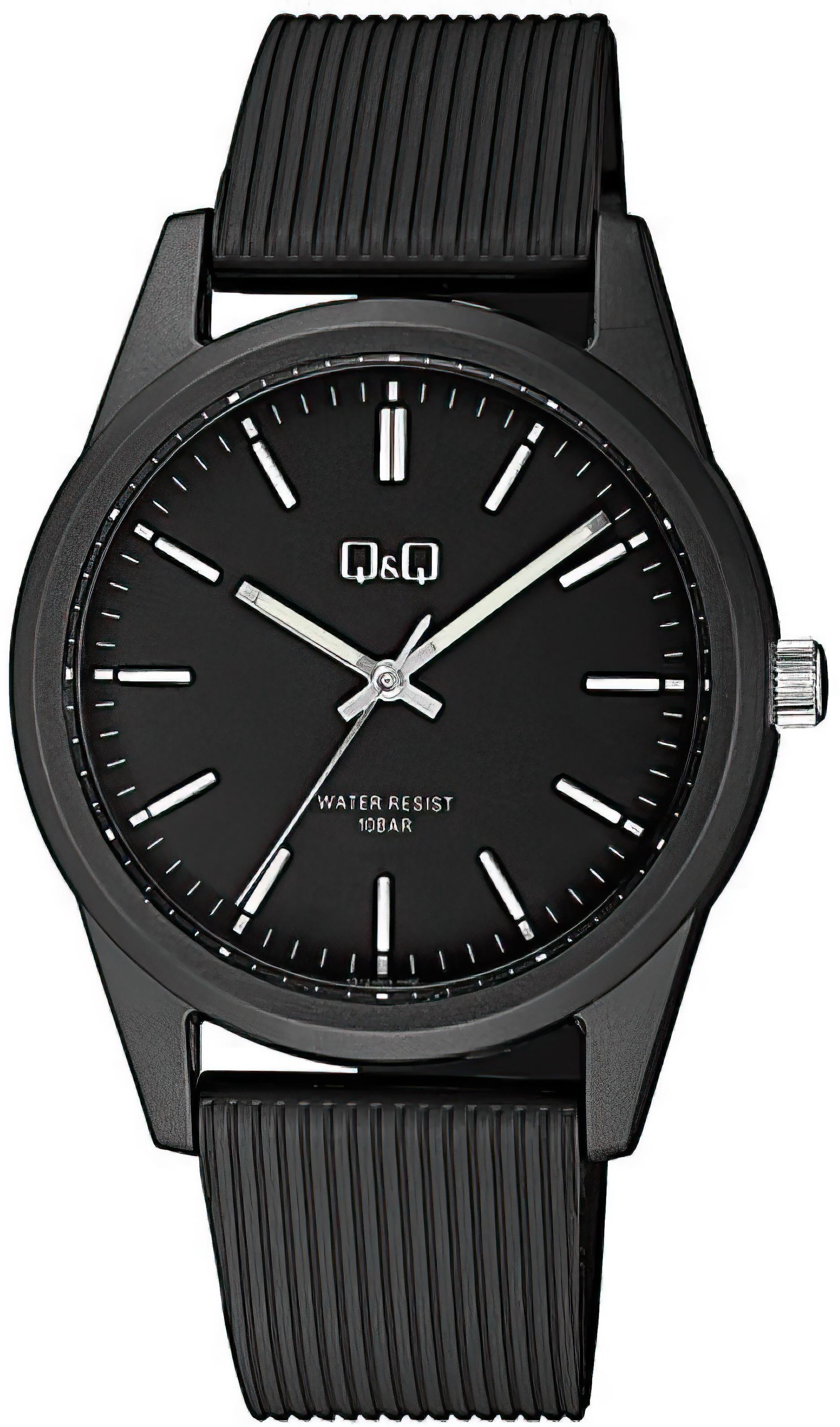 Мужские наручные часы Q&Q Attractive VS12J004Y. Точный кварцевый механизм с аналоговой индикацией. Полимерный корпус надежно защищает часы от механических повреждений. На стрелки и отметки нанесен светонакопительный состав, благодаря этому считывать информацию с циферблата возможно и в темноте. Полимерный ремешок. Натуральный полимерный материал является идеальным для изготовления ремешка благодаря своей чрезвычайной прочности и гибкости. Органическое стекло. Часы являются водонепроницаемыми до 10 Бар. Цвет корпуса: Черный. Цвет циферблата: Черный. Ширина (с заводной головкой): 40мм. Толщина: 10мм. Гарантия: 1 год.