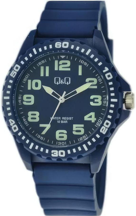 Мужские наручные часы Q&Q Attractive VS16J009Y. Точный кварцевый механизм с аналоговой индикацией. Полимерный корпус надежно защищает часы от механических повреждений. Полимерный ремешок. Натуральный полимерный материал является идеальным для изготовления ремешка благодаря своей чрезвычайной прочности и гибкости. Органическое стекло. Часы являются водонепроницаемыми до 10 Бар. Цвет корпуса: Синий. Цвет циферблата: Черный. Ширина (с заводной головкой): 42мм. Толщина: 11мм. Гарантия: 1 год.