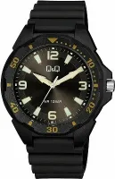 Мужские наручные часы Q&Q Attractive VS44J007Y. Точный кварцевый механизм с аналоговой индикацией. Полимерный корпус надежно защищает часы от механических повреждений. На стрелки и отметки нанесен светонакопительный состав, благодаря этому считывать информацию с циферблата возможно и в темноте. Полимерный ремешок. Натуральный полимерный материал является идеальным для изготовления ремешка благодаря своей чрезвычайной прочности и гибкости. Прочное органическое стекло защищает часы от повреждений. Часы являются водонепроницаемыми до 10 Бар. Цвет корпуса: Черный. Цвет циферблата: Коричневый. Ширина (с заводной головкой): 43мм. Толщина: 12мм. Гарантия: 1 год.