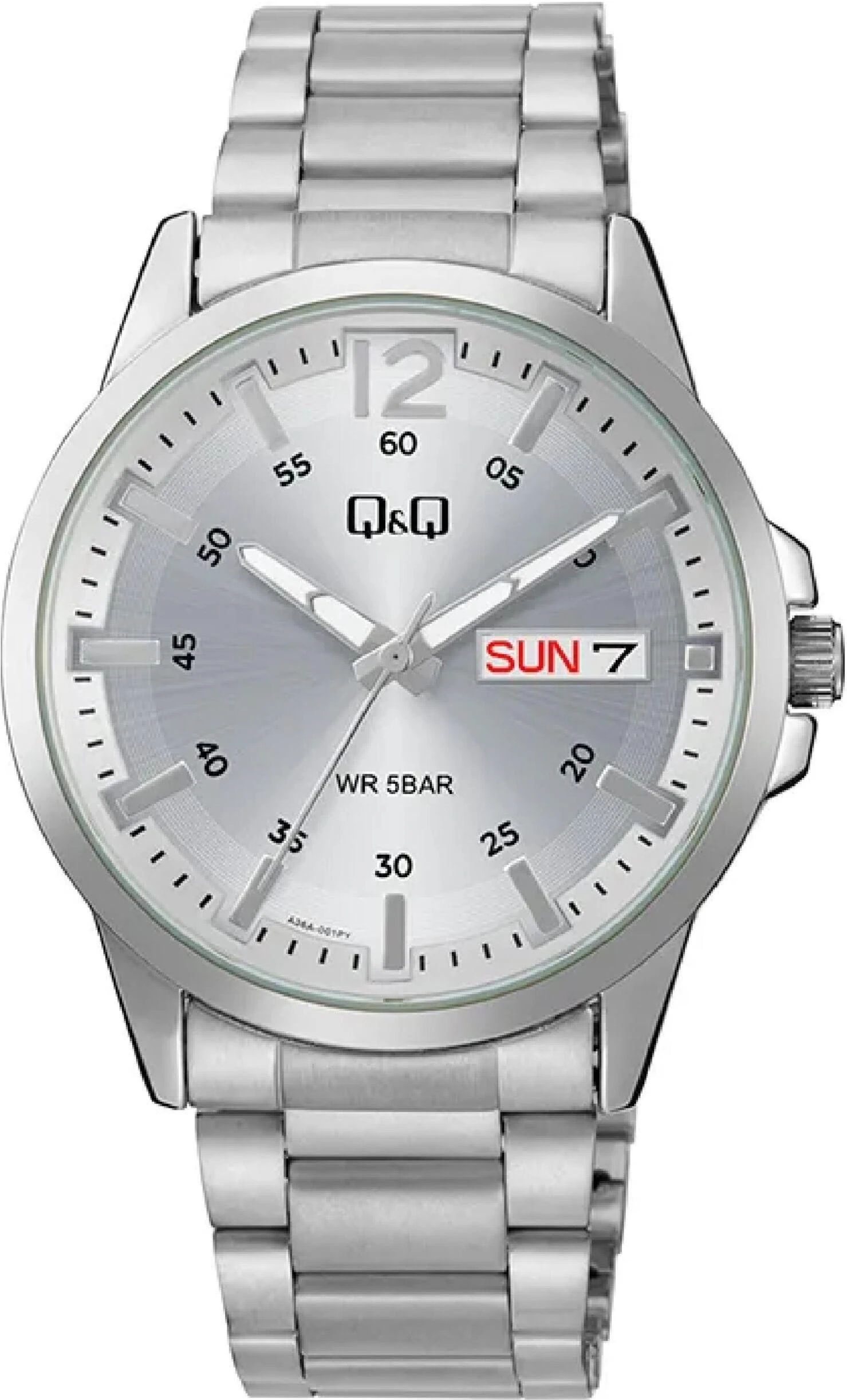 Мужские наручные часы Q&Q Attractive Women A36AJ001Y. Точный кварцевый механизм с аналоговой индикацией. Браслет из нержавеющей стали. Браслет из нержавеющей стали. Прочное, устойчивое к царапинам минеральное стекло защищает часы от повреждений. На циферблате отображается текущее число месяца и день недели. Часы являются водонепроницаемыми до 5 Бар. Цвет циферблата: Серебристый. Цвет корпуса: Серебристый. Толщина: 11 мм. Гарантия: 1 год.