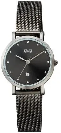 Женские наручные часы Q&Q Attractive Women A419J402Y. Точный кварцевый механизм с аналоговой индикацией. Корпус изготовлен из высококачественной часовой латуни с высокими антикоррозийными свойствами. На циферблате отображается текущее число месяца. Браслет из нержавеющей стали. Прочное, устойчивое к царапинам минеральное стекло защищает часы от повреждений.Часы являются водонепроницаемыми до 3 Бар. Цвет корпуса: Серый. Цвет циферблата: Черный. Ширина (с заводной головкой): 38мм. Толщина: 8мм. Гарантия: 1 год.
