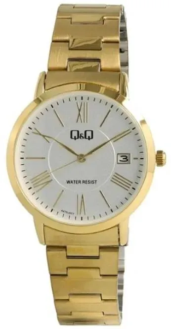 Женские наручные часы Q&Q Attractive Women A475J007Y. Точный кварцевый механизм с аналоговой индикацией. Корпус изготовлен из высококачественной часовой латуни с высокими антикоррозийными свойствами. На циферблате отображается текущее число месяца. Браслет из нержавеющей стали. Прочное, устойчивое к царапинам минеральное стекло защищает часы от повреждений.Часы являются водонепроницаемыми до 5 Бар. Цвет корпуса: Желтое золото. Цвет циферблата: Белый. Гарантия: 1 год.