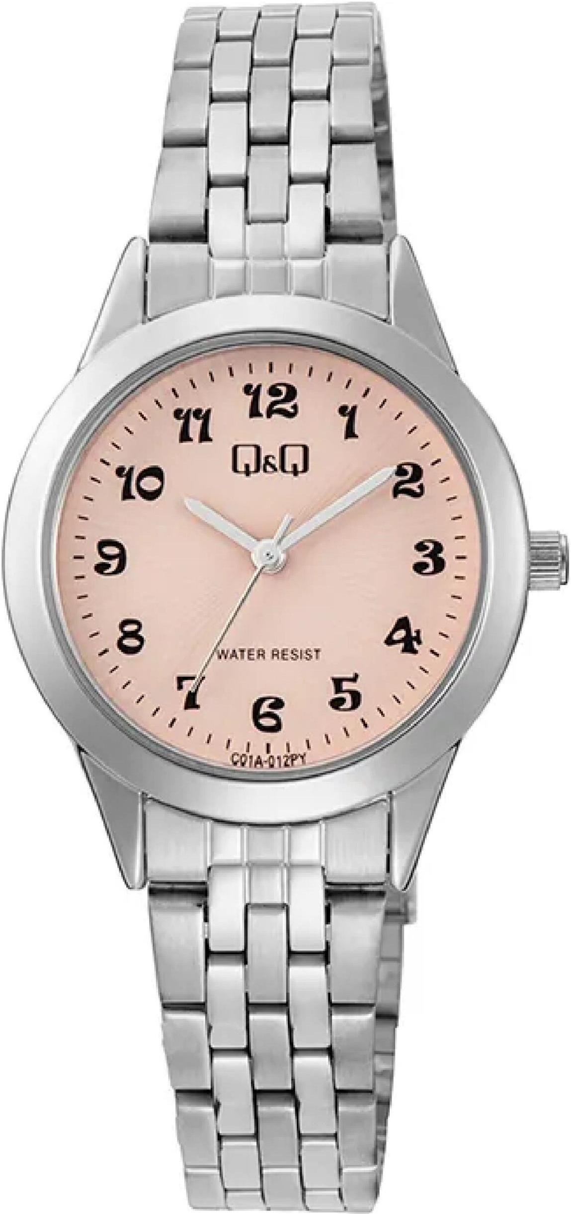 Женские наручные часы Q&Q Attractive Women C01AJ012Y. Точный кварцевый механизм с аналоговой индикацией. Браслет из нержавеющей стали. Браслет из нержавеющей стали. Прочное, устойчивое к царапинам минеральное стекло защищает часы от повреждений. Часы являются водонепроницаемыми до 3 Бар. Цвет циферблата: Серебристый. Цвет корпуса: Розовый. Толщина: 9 мм. Гарантия: 1 год.