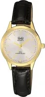 Женские наручные часы Q&Q Attractive Women C153J111Y. Корпус изготовлен из высококачественной часовой латуни с высокими антикоррозийными свойствами. Ремешок изготовлен из кожи. Прочное, устойчивое к царапинам минеральное стекло защищает часы от повреждений.Часы являются водонепроницаемыми до 3 Бар. Цвет корпуса: Желтое золото. Цвет циферблата: Серебристый. Ширина (с заводной головкой): 36мм. Толщина: 9мм. Гарантия: 1 год.