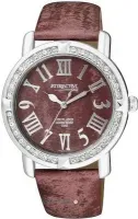 Точный кварцевый механизм. Центральная секундная стрелка. • Точность хода не хуже -10 +15 сек./в месяц. • Минеральное стекло устойчивое к возникновению царапин. • Корпус из высококачественного стального сплава 316L с высокими антикоррозийными свойствами. • Инкрустация искусственными кристаллами. • Красный кожаный ремешок. • Водозащита до 5 АТМ. • Диаметр корпуса 43 мм, толщина 10 мм. Вес 45 гр.