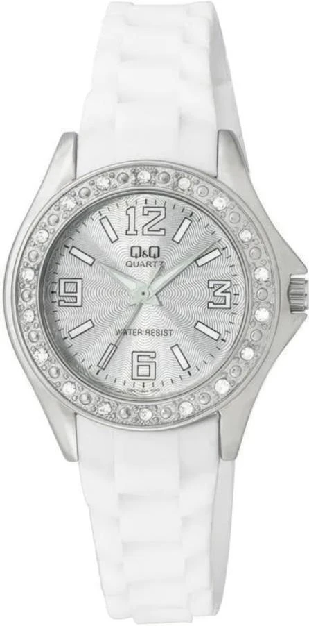 Женские наручные часы Q&Q Attractive Women Q661J304Y. Точный кварцевый механизм с аналоговой индикацией. Корпус изготовлен из высококачественной часовой латуни с высокими антикоррозийными свойствами. На стрелки и отметки нанесен светонакопительный состав, благодаря этому считывать информацию с циферблата возможно и в темноте. Ремешок изготовлен из каучука. Прочное, устойчивое к царапинам минеральное стекло защищает часы от повреждений.Часы являются водонепроницаемыми до 3 Бар. Цвет циферблата: Серебристый. Ширина (с заводной головкой): 38мм. Толщина: 9мм. Гарантия: 1 год.