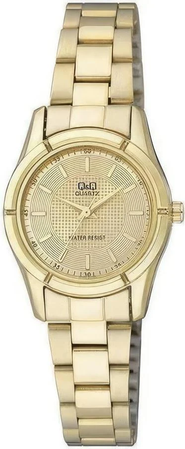 Женские наручные часы Q&Q Attractive Women Q877J010Y. Точный кварцевый механизм с аналоговой индикацией. Корпус изготовлен из высококачественной часовой латуни с высокими антикоррозийными свойствами. Браслет из нержавеющей стали. Прочное, устойчивое к царапинам минеральное стекло защищает часы от повреждений.Часы являются водонепроницаемыми до 3 Бар. Цвет корпуса: Желтое золото. Цвет циферблата: Золотистый. Ширина (с заводной головкой): 34мм. Толщина: 8мм. Гарантия: 1 год.