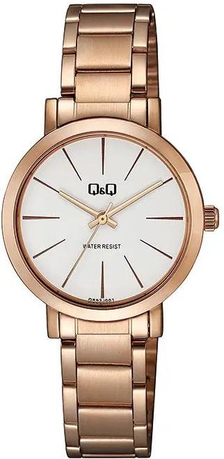 Женские наручные часы Q&Q Attractive Women Q893J001Y. Точный кварцевый механизм. Корпус изготовлен из высококачественной нержавеющей стали 316L с высокими антикоррозийными свойствами. Браслет из нержавеющей стали. Прочное, устойчивое к царапинам минеральное стекло защищает часы от повреждений. Часы являются водонепроницаемыми до 3 Бар. Цвет корпуса: Розовое золото. Ширина (с заводной головкой): 32мм. Толщина: 8мм. Гарантия: 1 год.