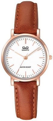 Женские наручные часы Q&Q Attractive Women Q979J101Y. Точный кварцевый механизм с аналоговой индикацией. Корпус изготовлен из высококачественной часовой латуни с высокими антикоррозийными свойствами. Ремешок изготовлен из кожи. Прочное, устойчивое к царапинам минеральное стекло защищает часы от повреждений.Часы являются водонепроницаемыми до 3 Бар. Цвет корпуса: Розовое золото. Цвет циферблата: Белый. Ширина (с заводной головкой): 36мм. Толщина: 8мм. Гарантия: 1 год.
