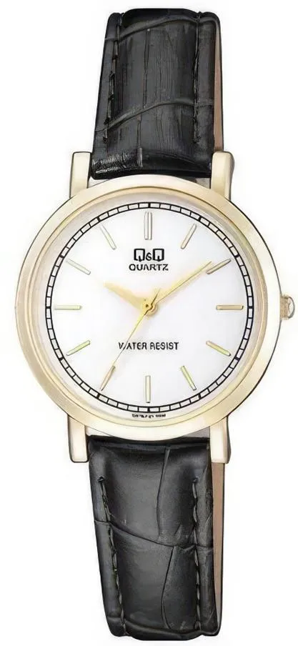 Мужские наручные часы Q&Q Attractive Women Q979J121Y. Точный кварцевый механизм с аналоговой индикацией. Корпус изготовлен из высококачественной часовой латуни с высокими антикоррозийными свойствами. Ремешок изготовлен из кожи. Прочное, устойчивое к царапинам минеральное стекло защищает часы от повреждений.Часы являются водонепроницаемыми до 3 Бар. Цвет корпуса: Желтое золото. Цвет циферблата: Белый. Ширина (с заводной головкой): 32мм. Толщина: 7мм. Гарантия: 1 год.