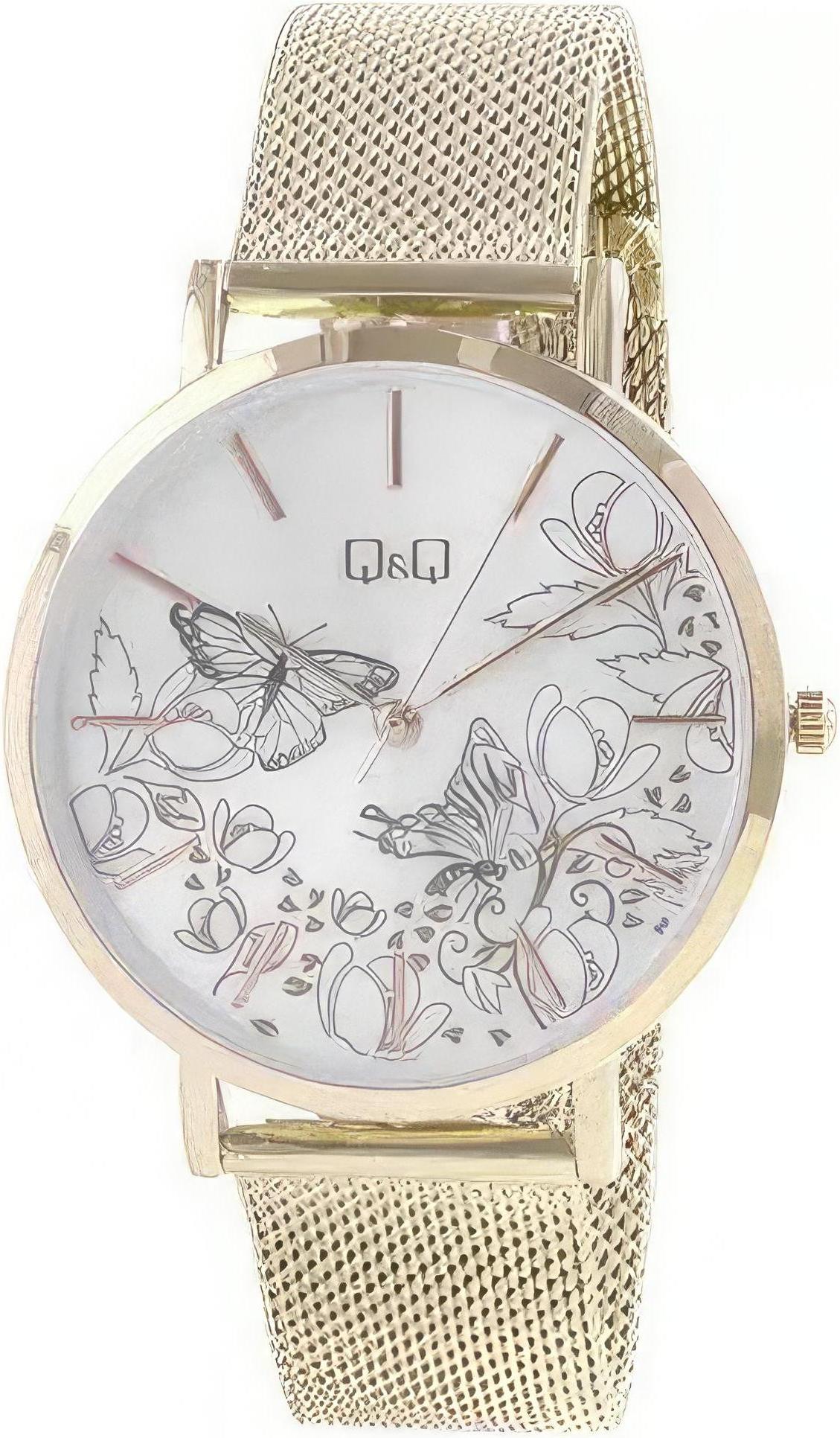 Женские наручные часы Q&Q Attractive Women QA20J031Y. Точный кварцевый механизм с аналоговой индикацией. Корпус изготовлен из высококачественной часовой латуни с высокими антикоррозийными свойствами. Браслет из нержавеющей стали. Прочное, устойчивое к царапинам минеральное стекло защищает часы от повреждений.Часы являются водонепроницаемыми до 3 Бар. Цвет корпуса: Желтое золото. Цвет циферблата: Белый. Ширина (с заводной головкой): 38мм. Толщина: 9мм. Гарантия: 1 год.