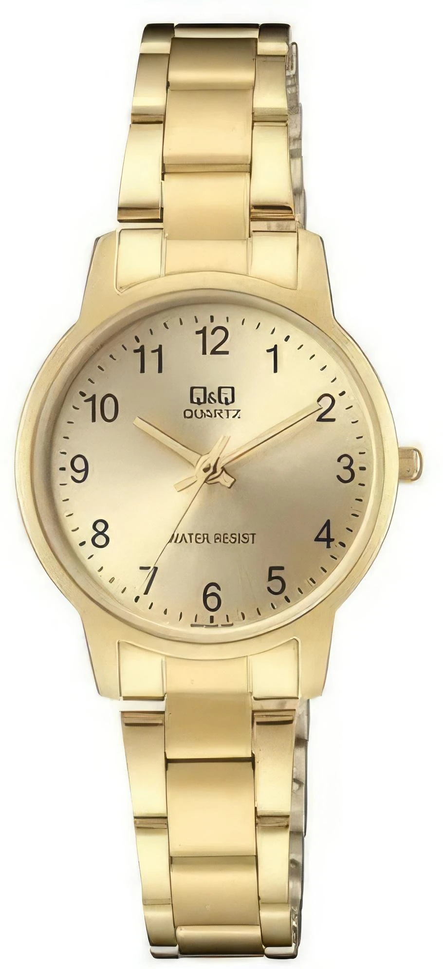 Женские наручные часы Q&Q Attractive Women QA47J003Y. Точный кварцевый механизм с аналоговой индикацией. Корпус изготовлен из высококачественной часовой латуни с высокими антикоррозийными свойствами. Браслет из нержавеющей стали. Прочное, устойчивое к царапинам минеральное стекло защищает часы от повреждений.Часы являются водонепроницаемыми до 3 Бар. Цвет корпуса: Желтое золото. Цвет циферблата: Золотистый. Ширина (с заводной головкой): 36мм. Толщина: 8мм. Гарантия: 1 год.