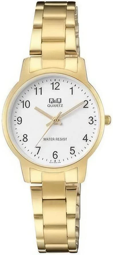 Женские наручные часы Q&Q Attractive Women QA47J004Y. Точный кварцевый механизм с аналоговой индикацией. Корпус изготовлен из высококачественной часовой латуни с высокими антикоррозийными свойствами. Браслет из нержавеющей стали. Прочное, устойчивое к царапинам минеральное стекло защищает часы от повреждений.Часы являются водонепроницаемыми до 3 Бар. Цвет корпуса: Желтое золото. Цвет циферблата: Белый. Ширина (с заводной головкой): 36мм. Толщина: 8мм. Гарантия: 1 год.