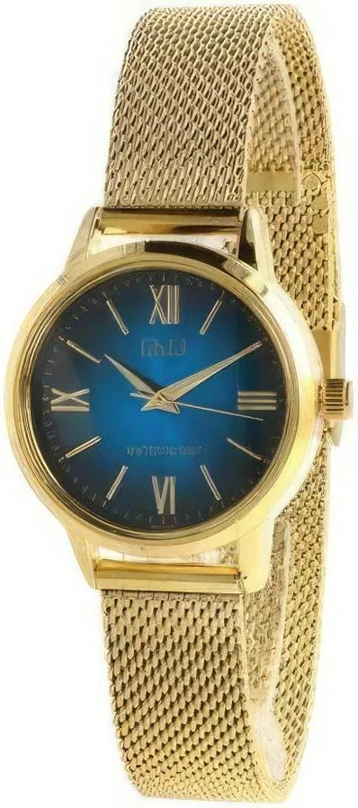Женские наручные часы Q&Q Attractive Women QB03J806Y. Точный кварцевый механизм с аналоговой индикацией. Корпус изготовлен из высококачественной часовой латуни с высокими антикоррозийными свойствами. Браслет из нержавеющей стали. Прочное, устойчивое к царапинам минеральное стекло защищает часы от повреждений.Часы являются водонепроницаемыми до 3 Бар. Цвет корпуса: Желтое золото. Цвет циферблата: Синий. Ширина (с заводной головкой): 38мм. Толщина: 9мм. Гарантия: 1 год.