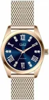 Женские наручные часы Q&Q Attractive Women QB05J803Y. Точный кварцевый механизм с аналоговой индикацией. Корпус изготовлен из высококачественной часовой латуни с высокими антикоррозийными свойствами. Браслет из нержавеющей стали. Прочное, устойчивое к царапинам минеральное стекло защищает часы от повреждений.Часы являются водонепроницаемыми до 3 Бар. Цвет корпуса: Розовое золото. Цвет циферблата: Синий. Ширина (с заводной головкой): 36мм. Толщина: 8мм. Гарантия: 1 год.