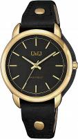 Женские наручные часы Q&Q Attractive Women QB19J102Y. Точный кварцевый механизм с аналоговой индикацией. Корпус изготовлен из высококачественной часовой латуни с высокими антикоррозийными свойствами. Ремешок изготовлен из кожи. Прочное, устойчивое к царапинам минеральное стекло защищает часы от повреждений.Часы являются водонепроницаемыми до 3 Бар. Цвет корпуса: Желтое золото. Цвет циферблата: Черный. Ширина (с заводной головкой): 36мм. Толщина: 8мм. Гарантия: 1 год.