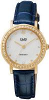 Женские наручные часы Q&Q Attractive Women QB45J101Y. Точный кварцевый механизм с аналоговой индикацией. Корпус изготовлен из высококачественной часовой латуни с высокими антикоррозийными свойствами. Ремешок изготовлен из кожи. Прочное, устойчивое к царапинам минеральное стекло защищает часы от повреждений.Часы являются водонепроницаемыми до 3 Бар. Цвет корпуса: Желтое золото. Цвет циферблата: Белый. Ширина (с заводной головкой): 36мм. Толщина: 8мм. Гарантия: 1 год.