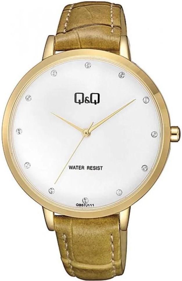 Женские наручные часы Q&Q Attractive Women QB57J111Y. Точный кварцевый механизм с аналоговой индикацией. Корпус изготовлен из высококачественной часовой латуни с высокими антикоррозийными свойствами. Ремешок изготовлен из кожи. Прочное, устойчивое к царапинам минеральное стекло защищает часы от повреждений.Часы являются водонепроницаемыми до 3 Бар. Цвет корпуса: Желтое золото. Цвет циферблата: Белый. Ширина (с заводной головкой): 38мм. Толщина: 9мм. Гарантия: 1 год.