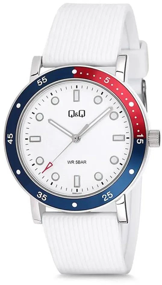 Мужские наручные часы Q&Q Attractive Women QB85J301Y. Точный кварцевый механизм. Корпус изготовлен из высококачественной нержавеющей стали 316L с высокими антикоррозийными свойствами. На стрелки и отметки нанесен светонакопительный состав, благодаря этому считывать информацию с циферблата возможно и в темноте. Полимерный ремешок. Натуральный полимерный материал является идеальным для изготовления ремешка благодаря своей чрезвычайной прочности и гибкости. Прочное, устойчивое к царапинам минеральное стекло защищает часы от повреждений. Часы являются водонепроницаемыми до 5 Бар. Цвет корпуса: Белый. Ширина (с заводной головкой): 40мм. Толщина: 10мм. Гарантия: 1 год.