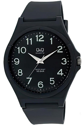 Мужские наручные часы Q&Q Attractive Women VQ66J026Y. Точный кварцевый механизм с аналоговой индикацией. Полимерный корпус надежно защищает часы от механических повреждений. На стрелки и отметки нанесен светонакопительный состав, благодаря этому считывать информацию с циферблата возможно и в темноте. Полимерный ремешок. Натуральный полимерный материал является идеальным для изготовления ремешка благодаря своей чрезвычайной прочности и гибкости. Органическое стекло. Часы являются водонепроницаемыми до 10 Бар. Цвет корпуса: Черный. Ширина (с заводной головкой): 42мм. Толщина: 10мм. Гарантия: 1 год.