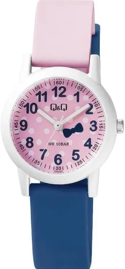 Детские наручные часы Q&Q Attractive Women VS49J005Y. Точный кварцевый механизм с аналоговой индикацией. Полимерный корпус надежно защищает часы от механических повреждений. Полимерный ремешок. Натуральный полимерный материал является идеальным для изготовления ремешка благодаря своей чрезвычайной прочности и гибкости. Органическое стекло. Часы являются водонепроницаемыми до 10 Бар. Цвет корпуса: Белый. Цвет циферблата: Розовый. Гарантия: 1 год.