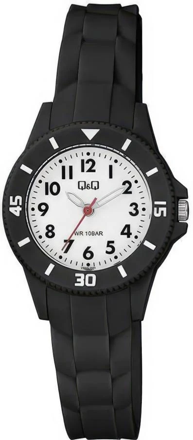 <b>Женские наручные часы Q&Q Attractive Women VS66J001Y.</b> Точный кварцевый механизм с аналоговой индикацией. Полимерный корпус надежно защищает часы от механических повреждений. На стрелки и отметки нанесен светонакопительный состав, благодаря этому считывать информацию с циферблата возможно и в темноте. Полимерный ремешок. Натуральный полимерный материал является идеальным для изготовления ремешка благодаря своей чрезвычайной прочности и гибкости. Органическое стекло. Часы являются водонепроницаемыми до 10 Бар. Цвет корпуса: Черный. Цвет циферблата: Белый. Ширина (с заводной головкой): 30мм. Толщина: 9мм. Гарантия: 1 год.