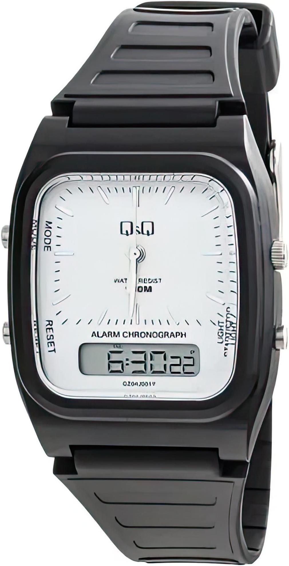 Мужские наручные часы Q&Q GZ04J001Y. Точный кварцевый механизм с аналого-цифровой индикацией. Полимерный корпус надежно защищает часы от механических повреждений. На циферблате отображается текущее число, месяц и день недели. Полимерный ремешок. Натуральный полимерный материал является идеальным для изготовления ремешка благодаря своей чрезвычайной прочности и гибкости. Прочное, устойчивое к царапинам минеральное стекло защищает часы от повреждений.Часы являются водонепроницаемыми до 10 Бар. Цвет корпуса: Черный. Цвет циферблата: Белый. Ширина (с заводной головкой): 54мм. Гарантия: 1 год.