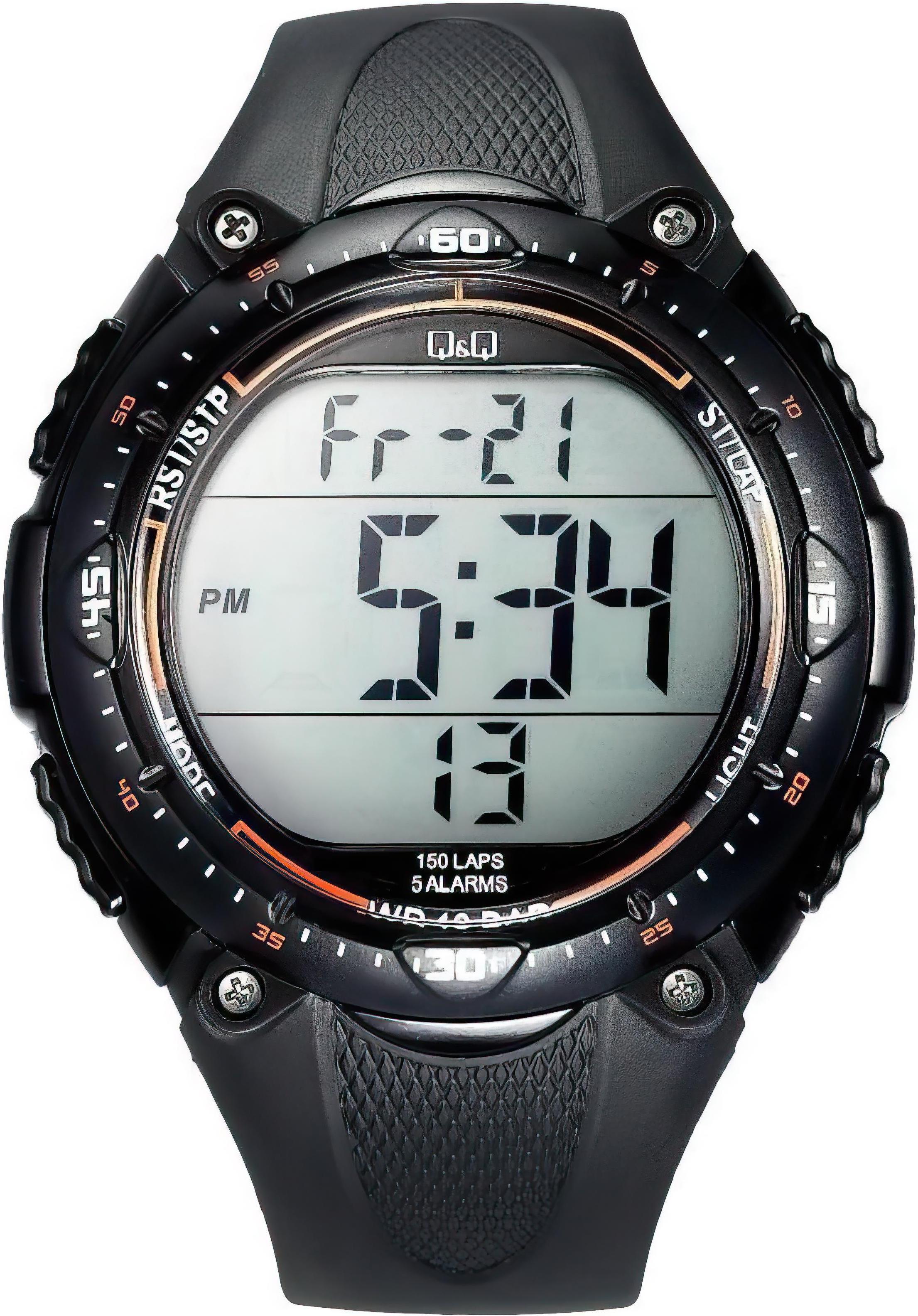 Мужские наручные часы Q&Q M010J001Y. Точный кварцевый механизм с цифровой индикацией. Полимерный корпус надежно защищает часы от механических повреждений. Ремешок изготовлен из каучука. Органическое стекло. Часы являются водонепроницаемыми до 3 Бар. Цвет корпуса: Черный. Ширина (с заводной головкой): 48мм. Гарантия: 1 год.
