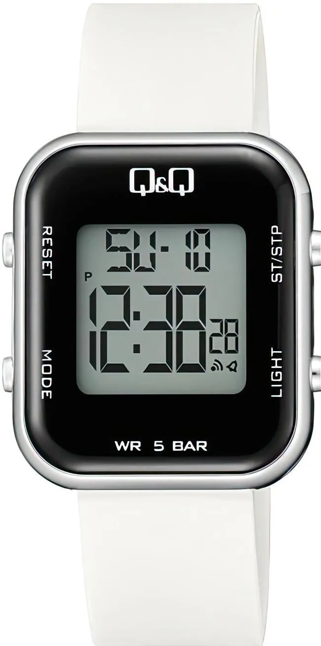 Женские наручные часы Q&Q Digital M207J005Y. Точный кварцевый механизм с цифровой индикацией. Полимерный корпус надежно защищает часы от механических повреждений. Светодиодная подсветка. На циферблате отображается текущее число, месяц и день недели. Функция хронографа. Функция таймера. Таймеры обратного отсчета напомнят Вам о текущих или особенных событиях, издав звуковой сигнал в установленное время. Функция будильника. Полимерный ремешок. Натуральный полимерный материал является идеальным для изготовления ремешка благодаря своей чрезвычайной прочности и гибкости. Органическое стекло. Часы являются водонепроницаемыми до 5 Бар. Цвет корпуса: Серебристый. Цвет циферблата: Черный. Ширина (с заводной головкой): 34мм. Толщина: 5мм. Гарантия: 1 год.