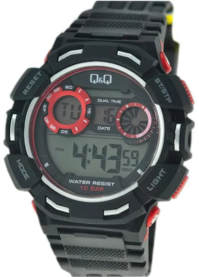 Электронные часы с точность хода не хуже -10 +15 сек./в месяц. • Ежедневный будильник со звуковым сигналом. • Секундомер. • Таймер обратного осчета. • Автоматический календарь. • Электрическая подсветка. • Минеральное стекло устойчивое к возникновению царапин. • Корпус из полимерных материалов. • Водозащита до 10 АТМ. • Нержавеющая сталь ремешок из полимерного материала. • Простая ремешковая застежка. • Диаметр 47 мм, толщина 17 мм. Вес 64 мм.