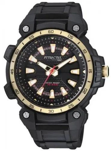 Точный кварцевый механизм. Центральная секундная стрелка. • Точность хода не хуже -10 +15 сек./в месяц. • Минеральное стекло устойчивое к возникновению царапин. • Люминесцентное покрытие. • Пластиковый корпус. • Водозащита до 10 АТМ. • Диаметр корпуса 48 мм, толщина 14 мм.
