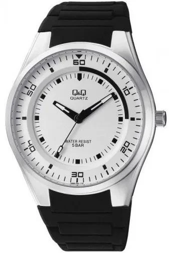 Мужские наручные часы Q&Q Q990J301Y. Точный кварцевый механизм с аналоговой индикацией. Корпус изготовлен из высококачественной нержавеющей стали 316L с высокими антикоррозийными свойствами. Полимерный ремешок. Натуральный полимерный материал является идеальным для изготовления ремешка благодаря своей чрезвычайной прочности и гибкости. Прочное, устойчивое к царапинам минеральное стекло защищает часы от повреждений. Часы являются водонепроницаемыми до 5 Бар. Цвет корпуса: Серебристый. Цвет циферблата: Белый. Ширина (с заводной головкой): 45мм. Гарантия: 1 год.