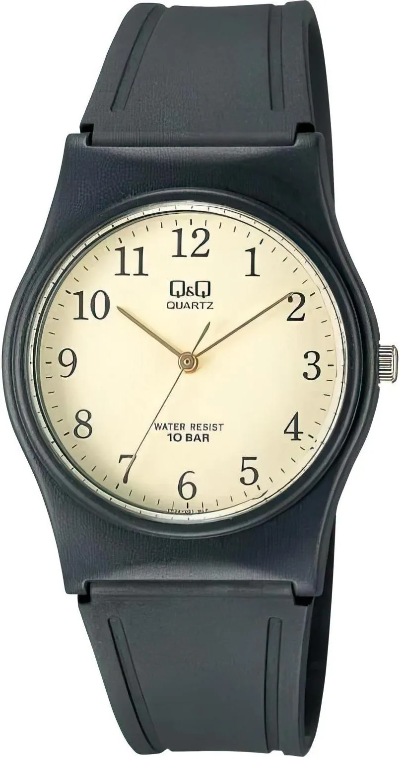 Детские наручные часы Q&Q  VP34J001Y. Точный кварцевый механизм с аналоговой индикацией. Полимерный корпус надежно защищает часы от механических повреждений. Полимерный ремешок. Натуральный полимерный материал является идеальным для изготовления ремешка благодаря своей чрезвычайной прочности и гибкости. Прочное, устойчивое к царапинам минеральное стекло защищает часы от повреждений.Часы являются водонепроницаемыми до 10 Бар. Цвет корпуса: Желтое золото. Цвет циферблата: Золотистый. Ширина (с заводной головкой): 29мм. Гарантия: 1 год.
